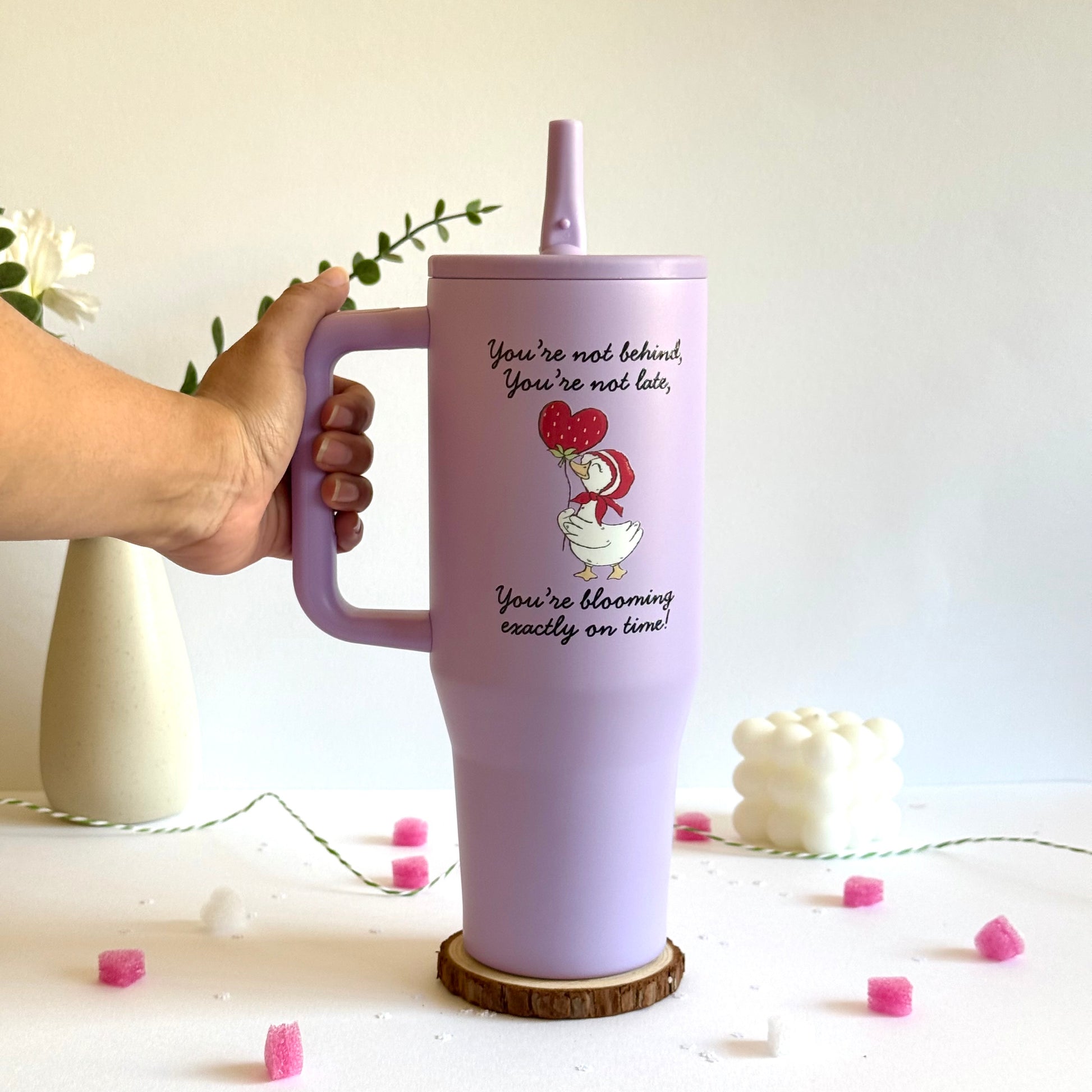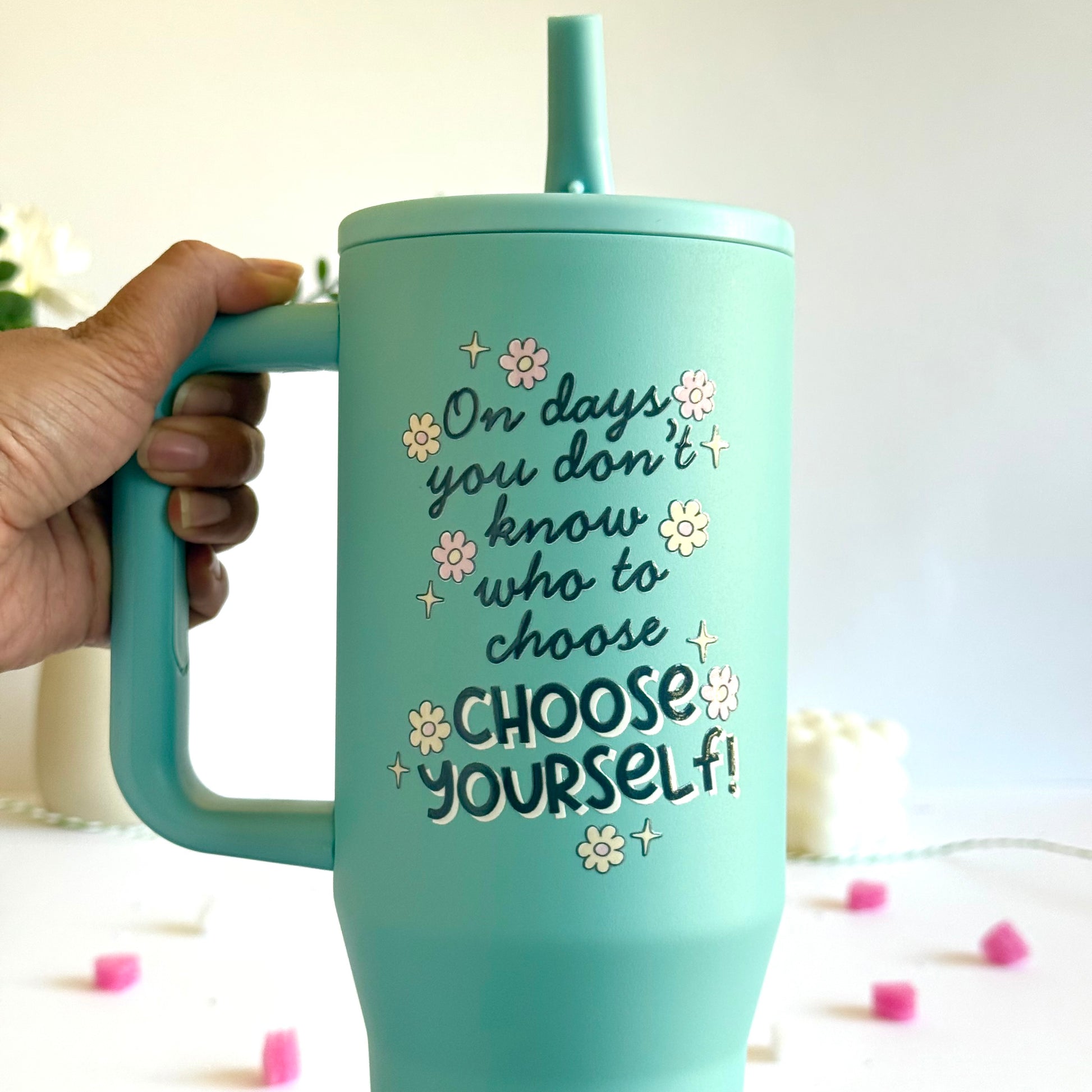 Trendy 40 oz Insulated Tumbler with Handle | Motivational Quote Hydration Mug