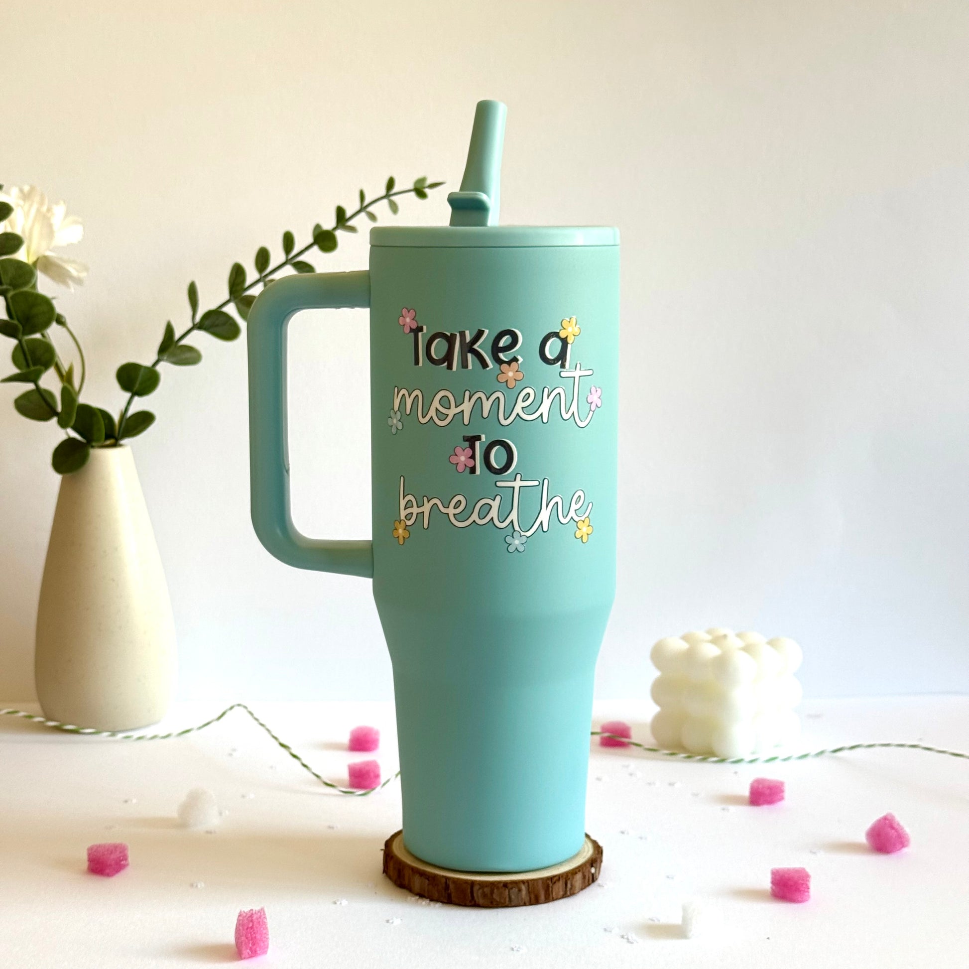 • The Peace Seeker: "take a moment to breathe" - A gentle, floral reminder to pause and recenter. (Shown in Mint)