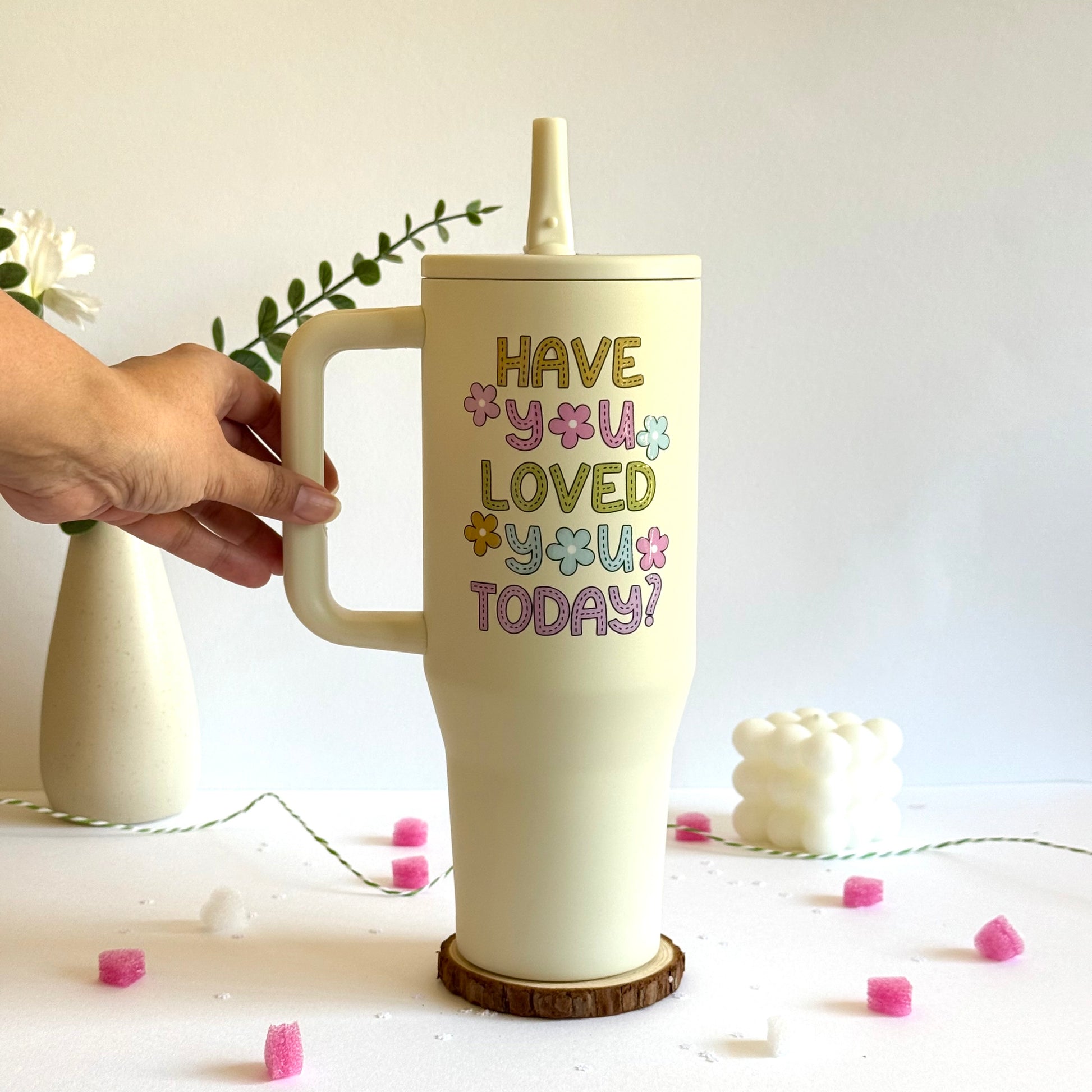 • The Self-Love Reminder: "Have you loved you today?" - A soft, floral cue for self-care. (Shown in Cream)